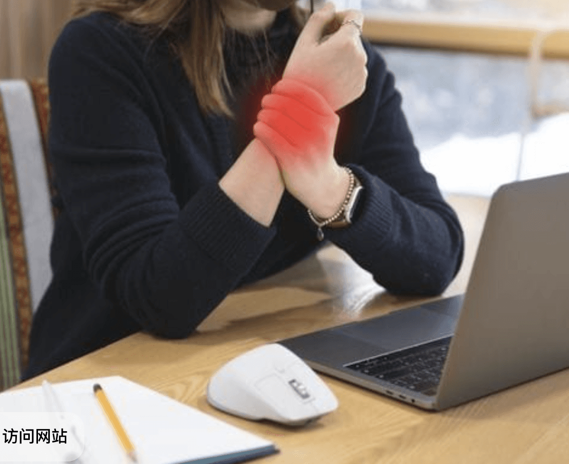 By 50 minutes, repeated clicking raised fatigue to 3.6/10 and increased risk of musculoskeletal disorders such as tennis elbow.